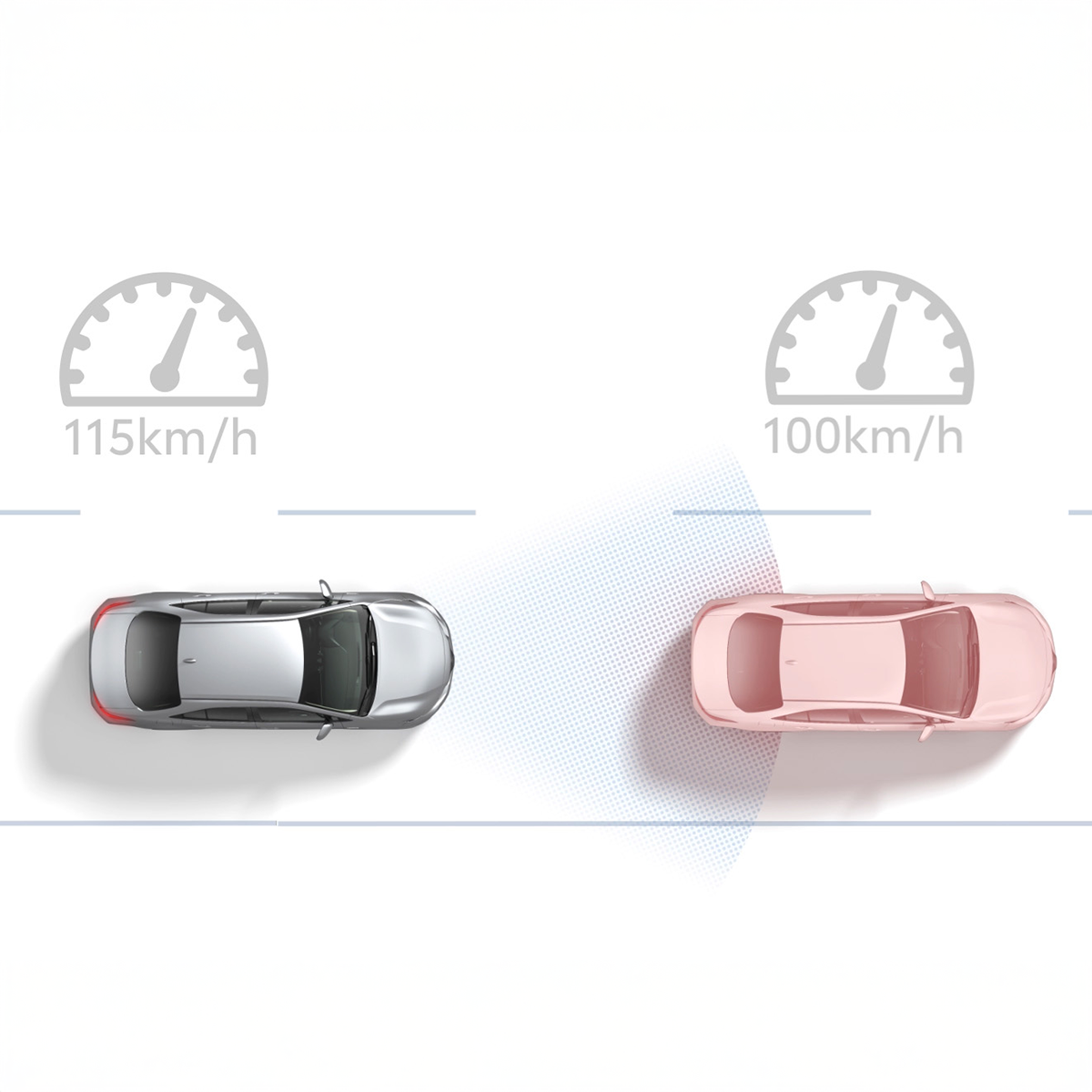 Inteligentny tempomat adaptacyjny utrzymuje stały zadany dystans od poprzedzającego auta. Jeżeli odległość zacznie się zmniejszać, tempomat automatycznie zacznie hamować i uruchomi światła stop.